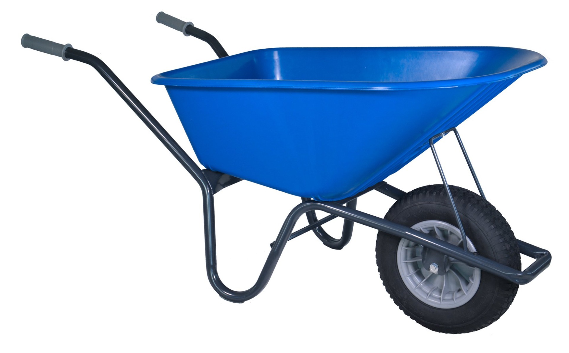 Bestel gemakkelijk onze Tuin kruiwagen met gecoat frame 100 liter blauw. Deze kruiwagen is geproduceerd met een kunststof PP bak van 100 liter. Volledig gelast frame van premium grijs gecoate ronde buis in RAL 7016 en voorzien van slijtsloffen.
